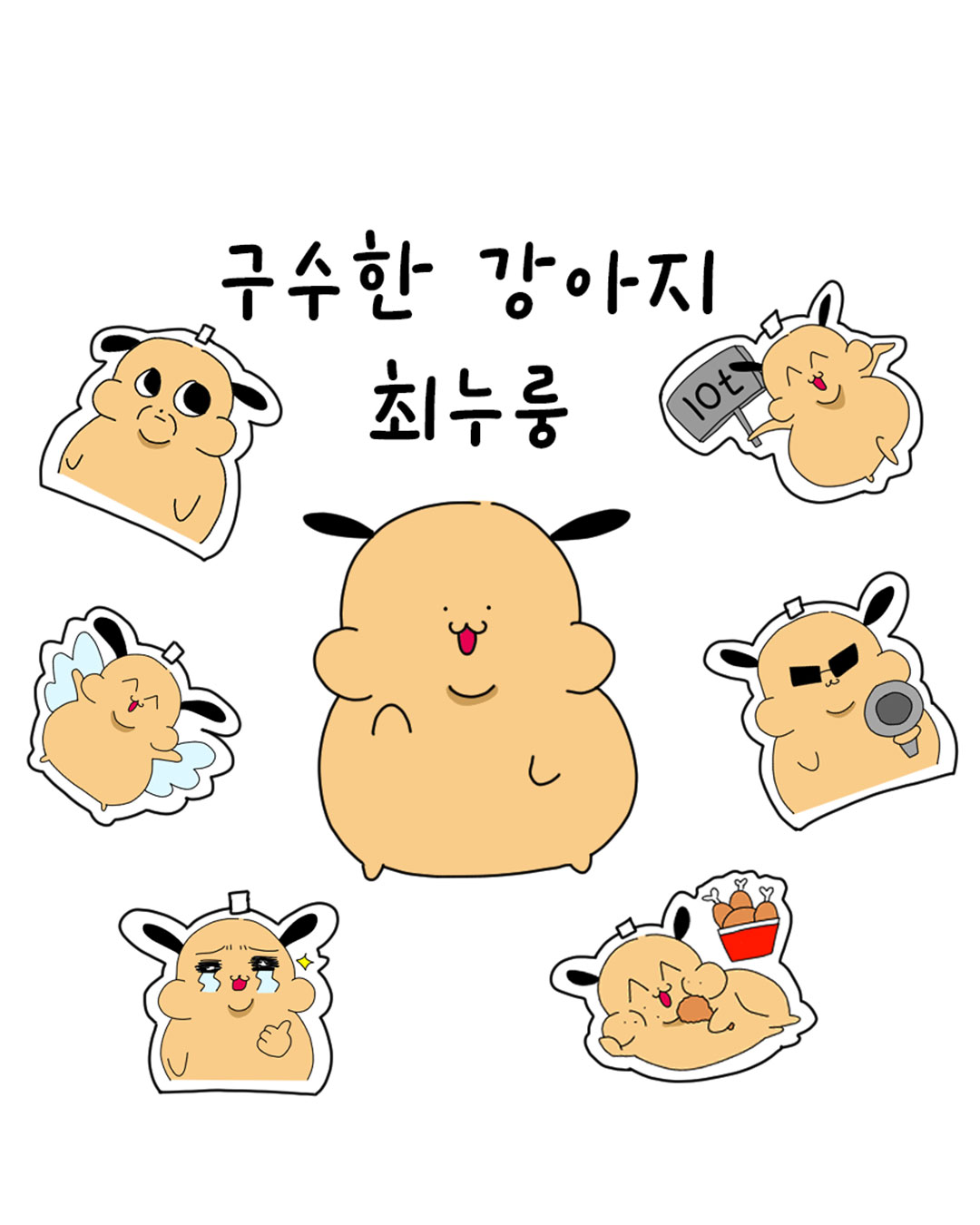 캐릭터디자인을 주로 하고 있으며 대표 캐릭터로는 구수한 강아지 최누룽을 그리고 있습니다.