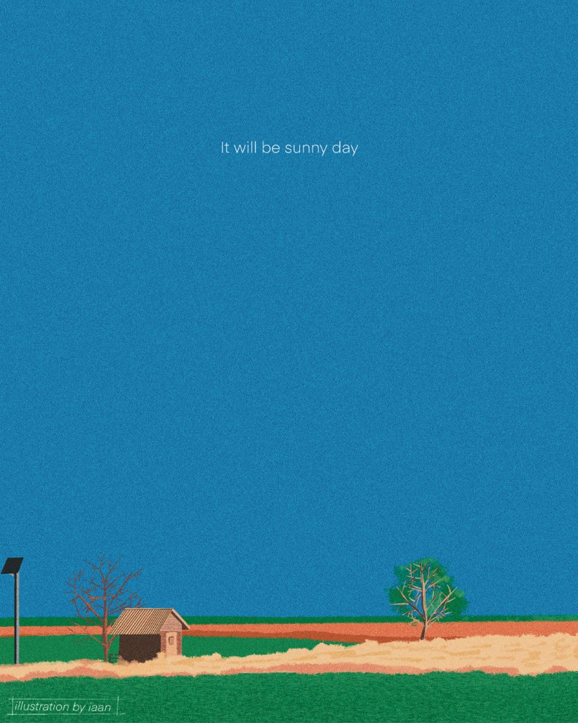 넓게 펼쳐진 하늘 아래에 아주 작은 풍경 요소만을 배치한 작업으로, 일상의 조용한 순간과 그 안에 머무는 희망의 감정을 담아냅니다. 화면의 대부분을 차지하는 파란 하늘은 단순한 배경이 아니라 감정이 투영되는 여백이며, 도시나 자연 속에서 잠시 멈춰 서게 되는 고요한 시간을 상징합니다.