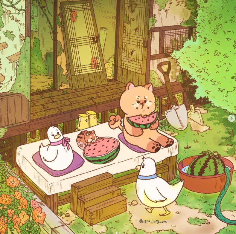 대표 작품은 1번입니다. 정복이의 세계관이 제대로 나온 작품이라고 생각하는 작품중에 하나입니다. 정복이는 우주에서 지구로 떨어진 강아지입니다. 정복이가 살고있던 행성에는 지구라는 곳은 사람이 가득하다 라고 배웠지만 정복이가 떨어진 지구는 식물과 동물들 그리고 사람이 살았던 흔적만 있는 곳으로 남아있습니다. 이곳에서 정복이는 동물친구 다람쥐랑 오리친구들과 함께 그저 잃어버린 우주선을 찾기 위해서 다양한곳들을 돌아다니게 됩니다.