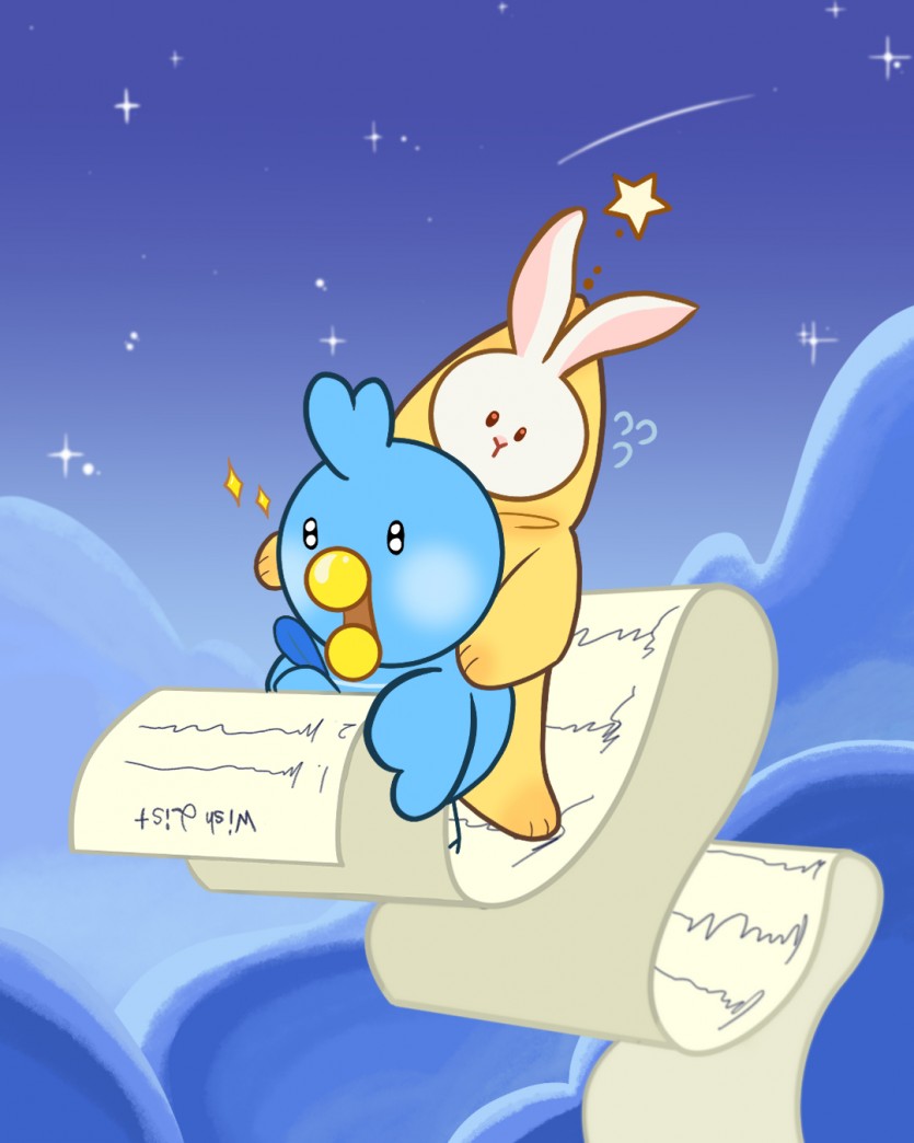 서머위시는 일하길 좋아하는 별토끼 새별과 노는 걸 좋아하는 파랑새 하루의 여름휴가 프로젝트예요!