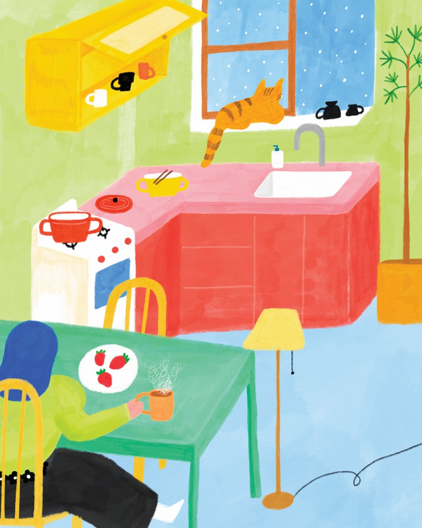 안녕하세요. 일러스트레이터 윤섬입니다. 일상 속 즐거운 요소들을 포착하여 경쾌한 컬러로 담아내는 작업을 하고 있어요.