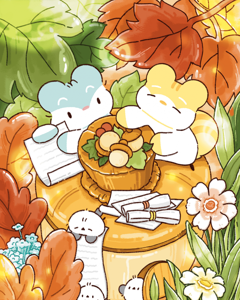 아찌와 하찌는 사람들의 행복을 모아 행복 도토리를 만들고