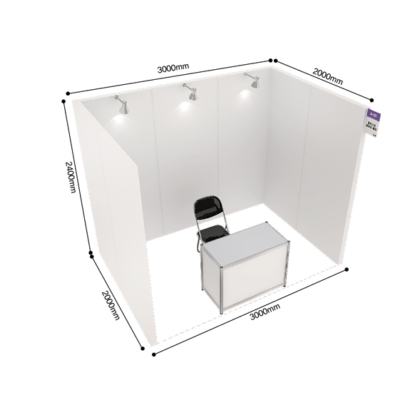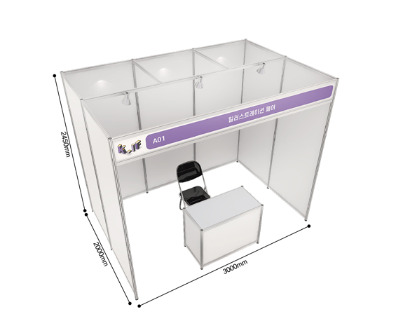 | 조립 부스 | 조립B 상세 보기 | 3m X 2m X 2.5m | 1,200,000원 / 부스 | 조립식 벽체, 간판, 조명, 안내데스크 및 의자 1조, 콘센트 1개 |